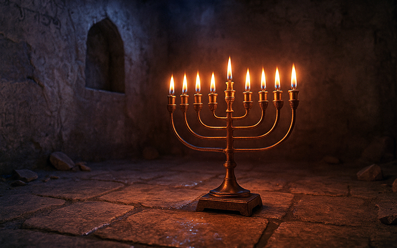 Свет огней Меноры в храме напоминает нам слова Иешуа, что каждый верующий является светом для окружающих его людей. Как сегодня ханукию ставят на подоконник, чтобы она освещала дом и путь прохожим, так наши добрые дела должны являть Божий свет всему миру.